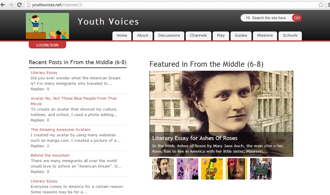 As I mentioned earlier, the students are using their “This I Believe Essay” to get to know each other more. My colleague and I decided we would have the students post their essays on Youth Voices. Youth Voices is an online platform where students can publish their writing where other students can discuss the same topics or issues. By having the students post here, they could read each other’s essays and respond appropriately.